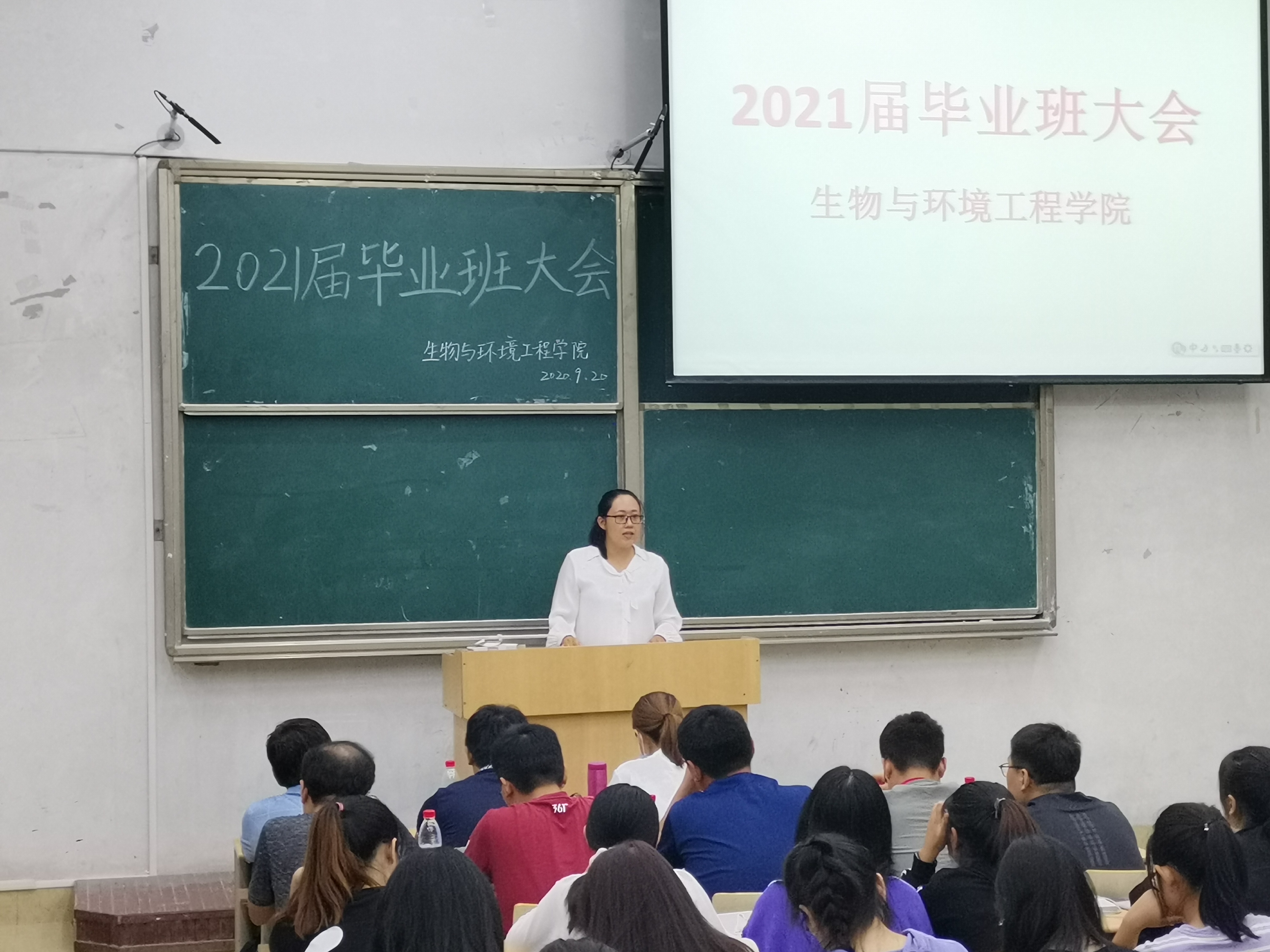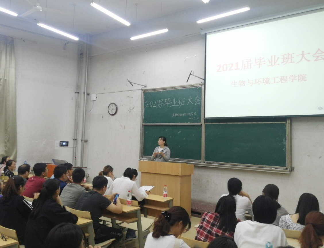 为更好引导毕业生顺利完成学业,9月19日晚,生物与环境工程公司于1号教学楼107举办2021届本科毕业生大会,毕业班班主任、200多名同学参加了本次大会。王君副经理主持。