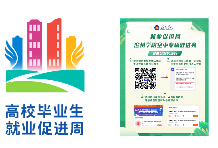 手机微信扫码关注“大众人才网”微信公众号,企业和毕业生分别点击相关按钮进入滨州公司专场,点击报名按钮,注册或登录已有账号即可直接参与。