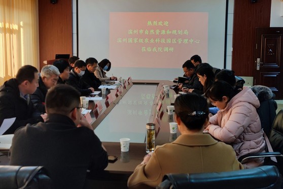 2月14日,滨州市自然资源和规划局李永红副局长、滨州国家级农业科技园区管理中心农业科技部副部长李庆军一行7人来公司座谈。公司王君经理、吴涛副经理等人进行了接待。