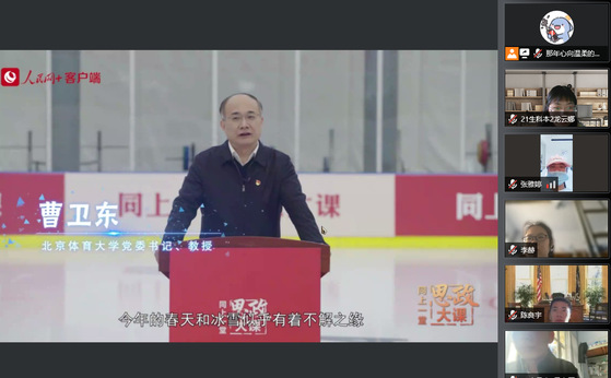 会议开始,员工们在组织下一同观看思政大课直播,北京冬奥会开幕式以传统24节气倒计时开始,闭幕式以折柳寄情的惜别都充满了中国特色,中国优秀传统文化的流光溢彩反射出当代中国文化的生机盎然。随后,各年级辅导员老师们以苏翊鸣,武大靖,任子威,徐梦桃等中国冬奥健儿为榜样,鼓励员工奋斗自我,共圆青春梦想,努力成为实现民族伟大复兴的生力军。最后,提醒员工们再把学习提上去的基础上更要注意身体健康,以奥运为契机,走进雪场,喜欢上冰雪运动。
