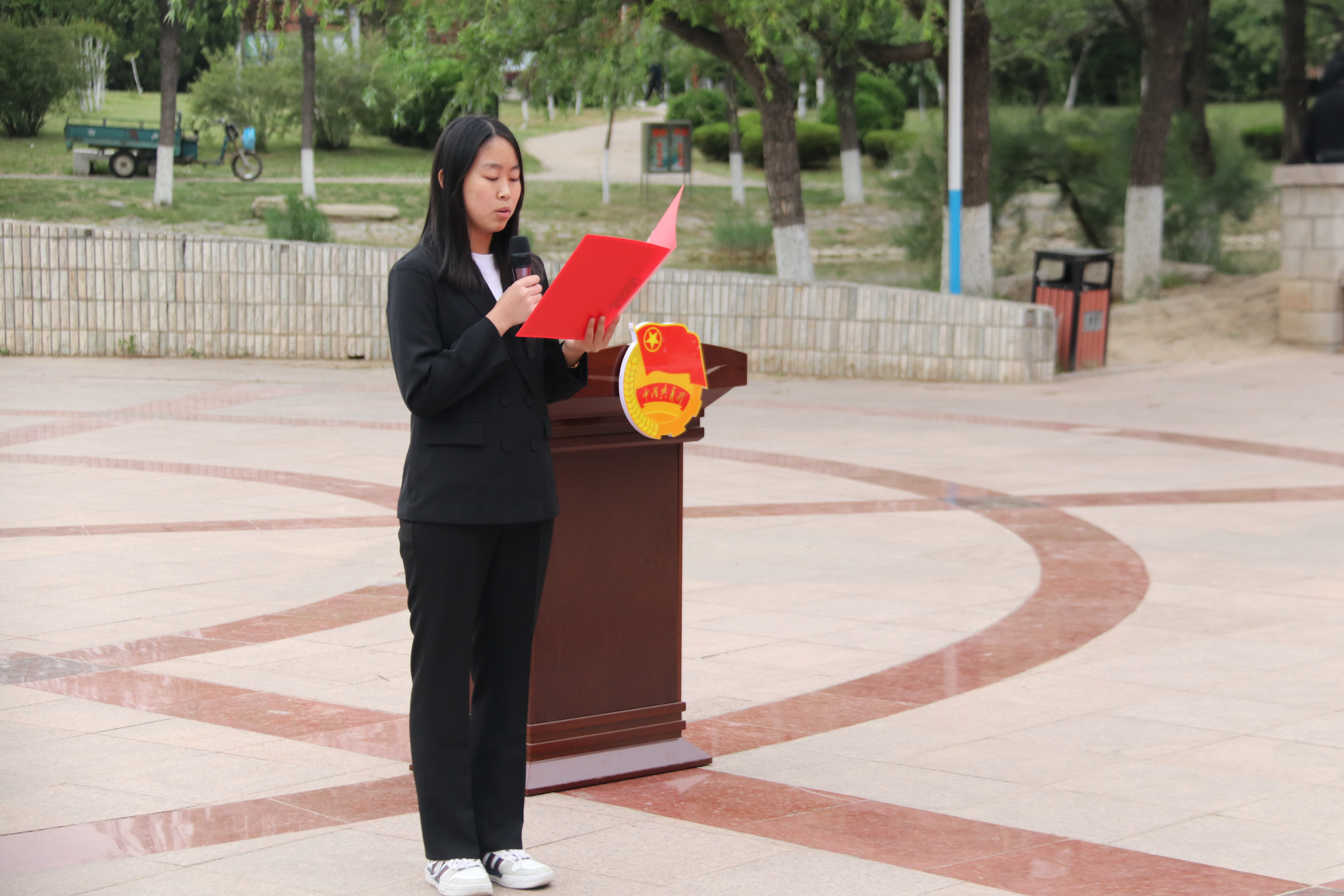 现场同学们组成“五四”的字样,一同回顾了中国共产主义青年团成立以来的百年辉煌历史。随后,小芽文艺团朗诵了《青春 使命》,在他们激情铿锵的朗诵中,全体师生一同感受着青春的力量。随后为4名新团员组织了入团仪式,老团员为他们颁发团章、团员证,佩戴团徽,并与全体在场团员一同进行了入团宣誓。团总支书记赵望锋老师进行了总结讲话,并对团员们提出了期望和要求。最后,全体师生合唱团歌,结束了活动。
