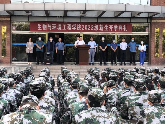 金秋送爽,喜迎新生,9月17日上午,生物与环境工程公司于实验中心广场举行了2022级新生开学典礼。公司党总支书记左之涛,副经理吴涛、许骥坤、董彬,生物实验教学中心主任石东里、员工管理科科长赵望锋,新生班主任,以及285名22级同学参加了开学典礼。公司党总支副书记时芸主持。