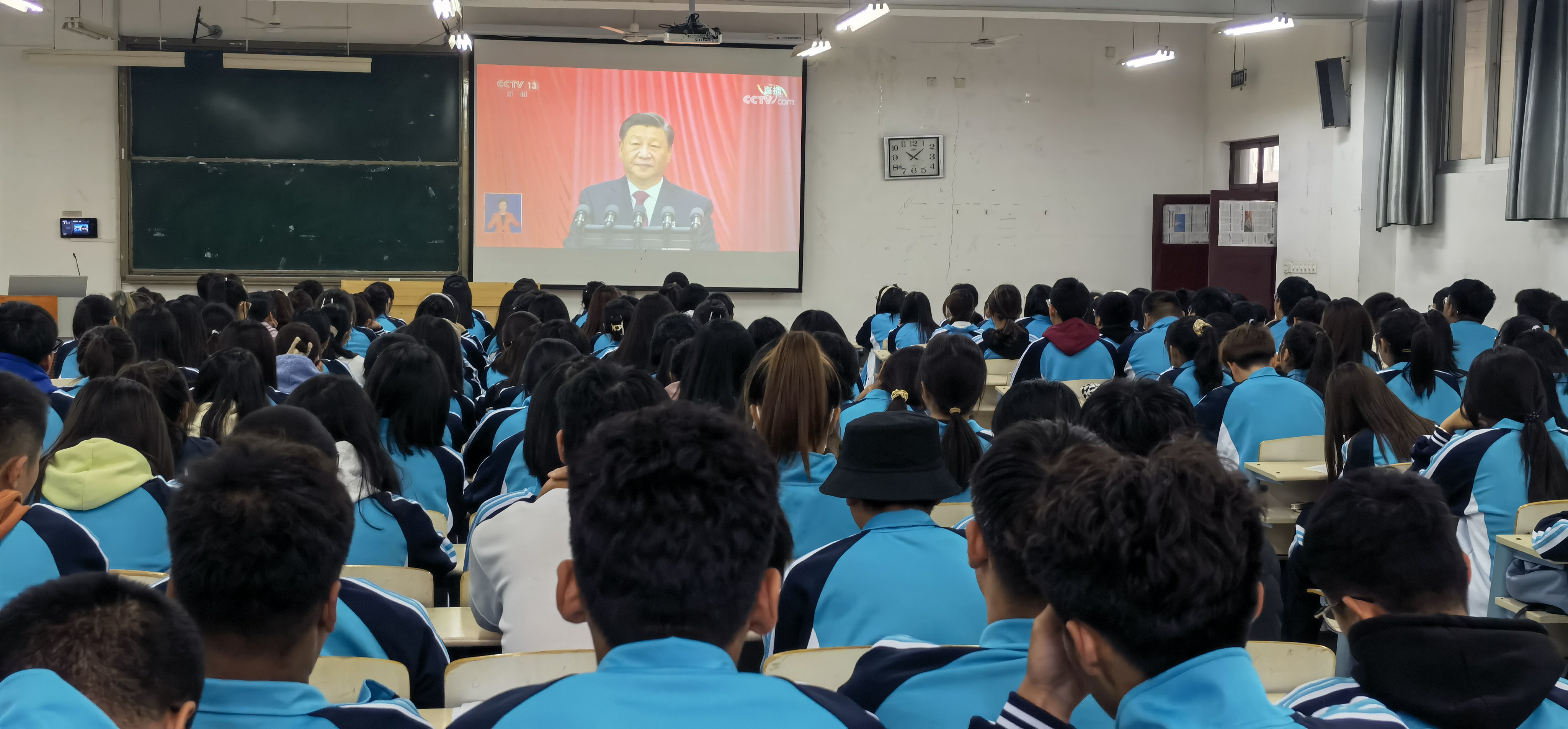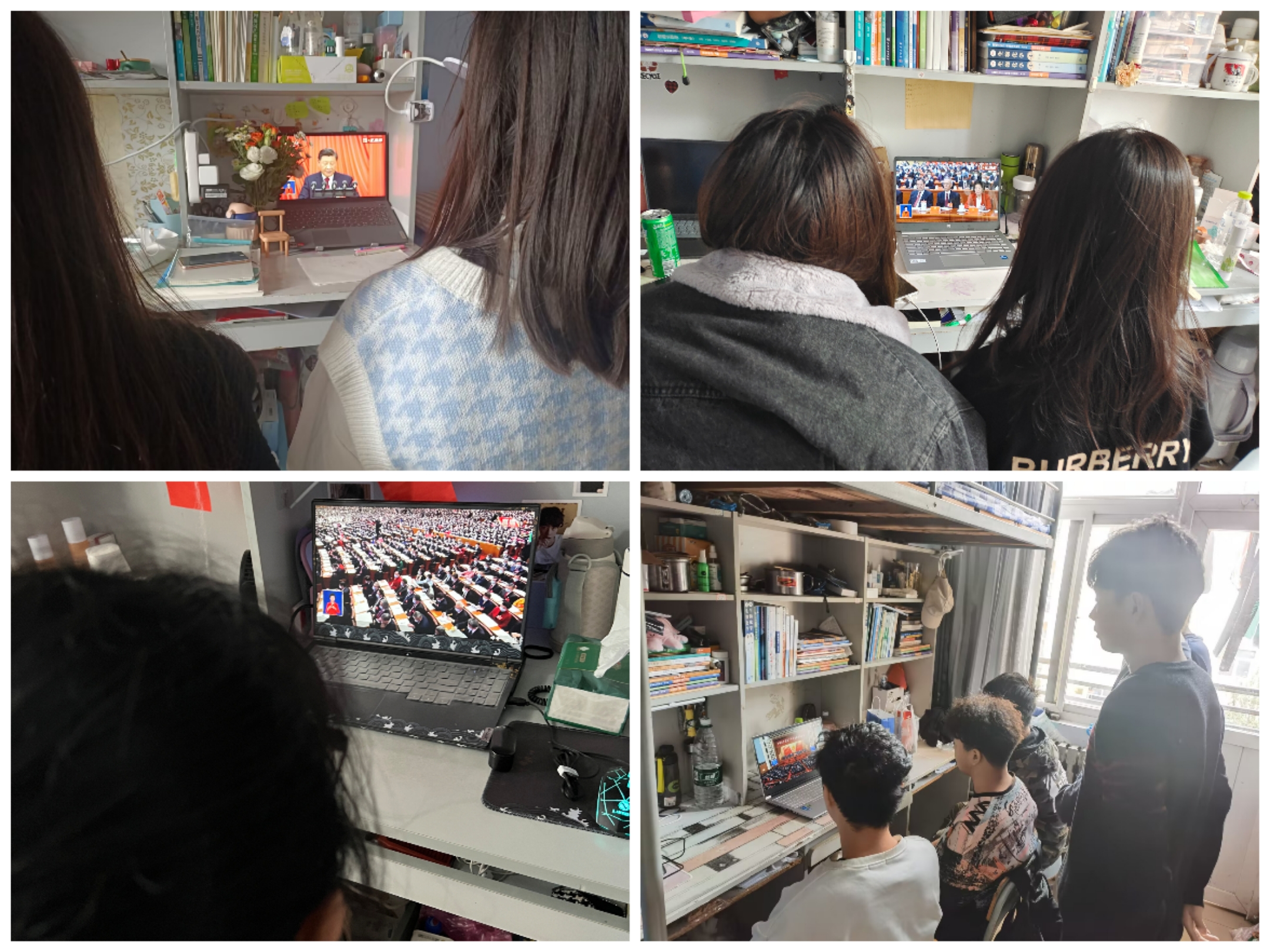 历史性成就,是新时代的生动注脚;历史性变革,是青年一代对未来的信心所在。教学楼、公寓里,同学们通过各种渠道,认真观看报告直播,聆听会议报告,感受五年来的巨大变化,了解新时代的发展动向和建设目标。