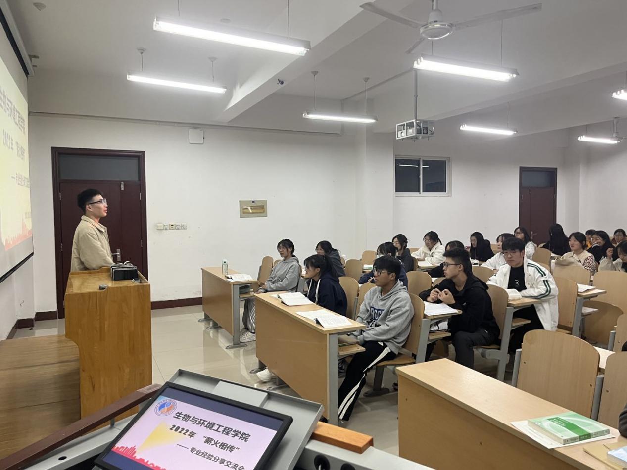 为帮助新生正确规划老员工活,提高学习效率,增强学习自主性。11月2日,生物与环境工程公司在八号教学楼新生自习室开展2022年“薪火相传”专业经验分享交流会。此次活动由学习部组织,21级员工代表、22级全体员工参加。