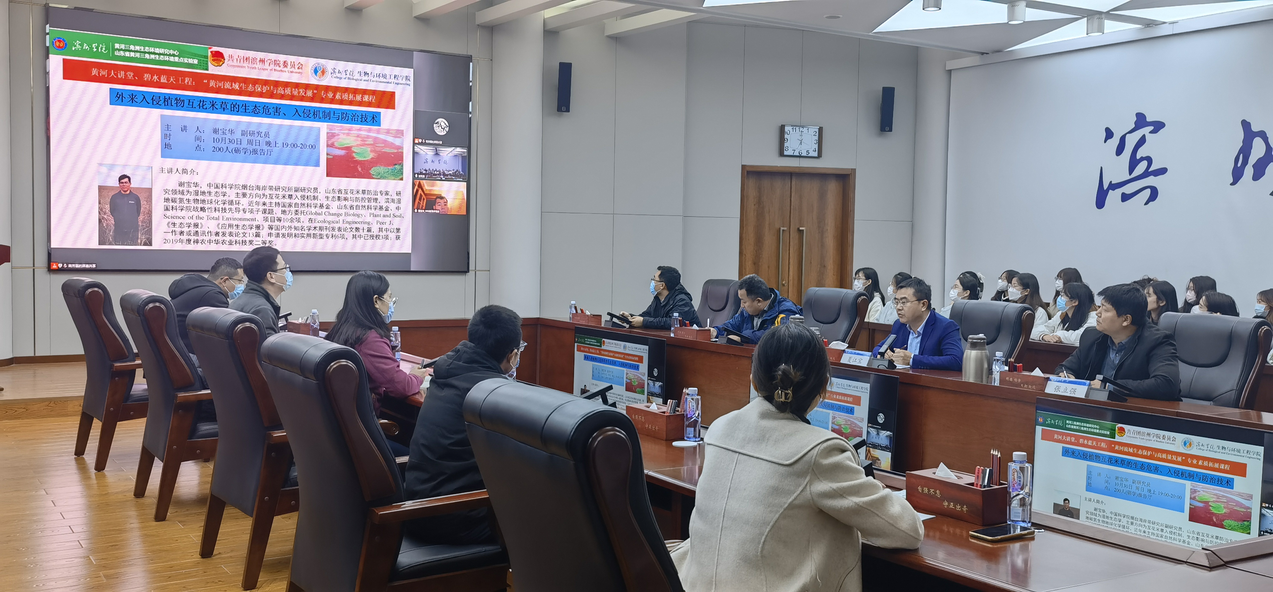为进一步了解黄河三角洲外来入侵植物互花米草的现状、危害及其综合防控技术,10月31日,生物与环境工程公司邀请山东省互花米草防治专家、中国科公司烟台海岸带所谢宝华副研究员于滨州公司学苑会堂第二报告厅和大家进行研讨交流。员工科长赵望锋、全体辅导员以及20、21生态班全体成员和碧水蓝天志愿服务队队员参与此次会议。