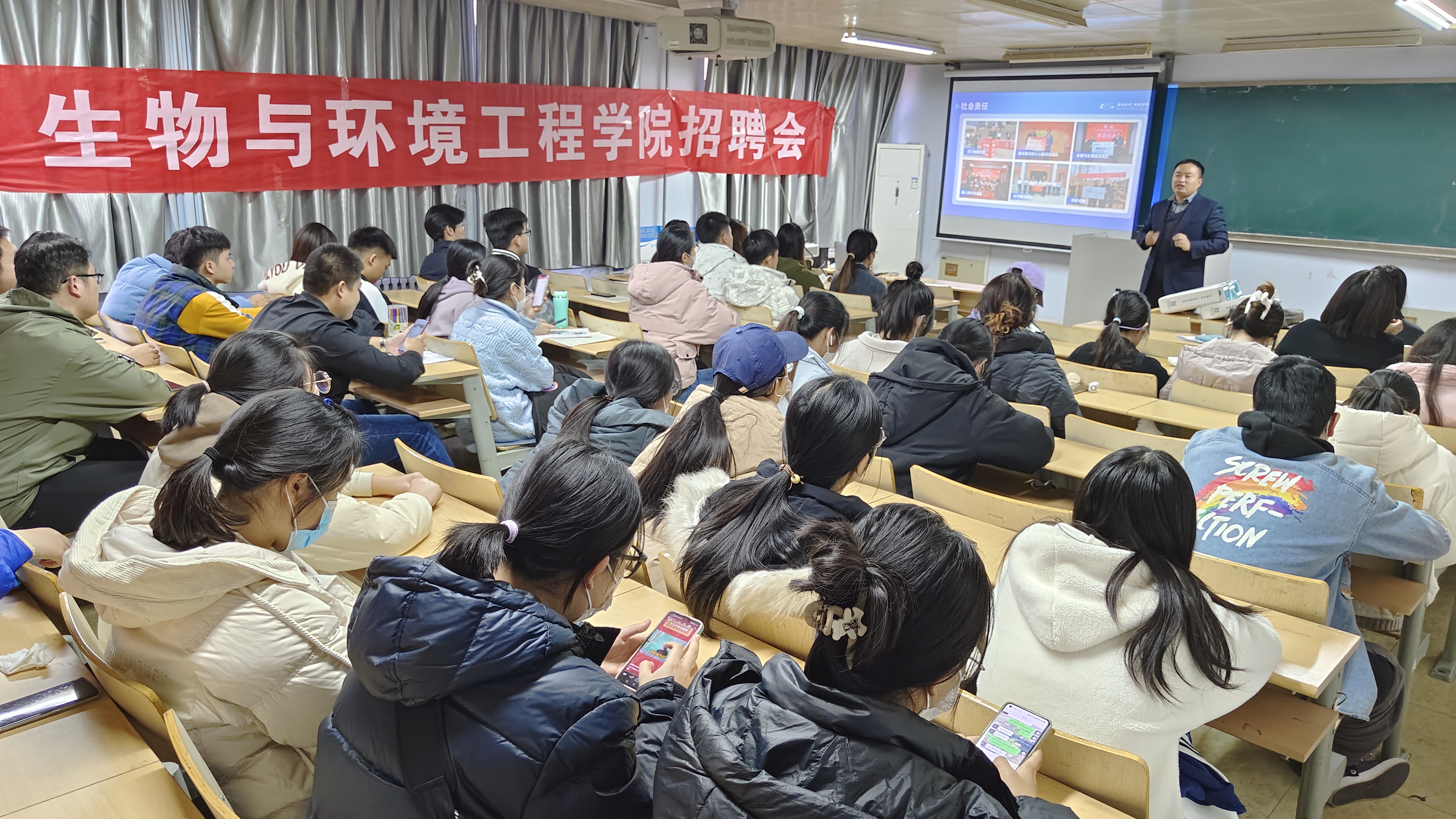 为使毕业生进一步了解就业形势,提供更多就业选择,11月17日,生物与环境工程公司于B7-311召开就业招聘会。鲁南制药集团,山东科伦药业、滨州中裕食品、山东沃华生物等4家企业参加招聘会做了就业宣讲,50多名毕业生参加了找招聘会。就业指导科科长赵望锋主持。