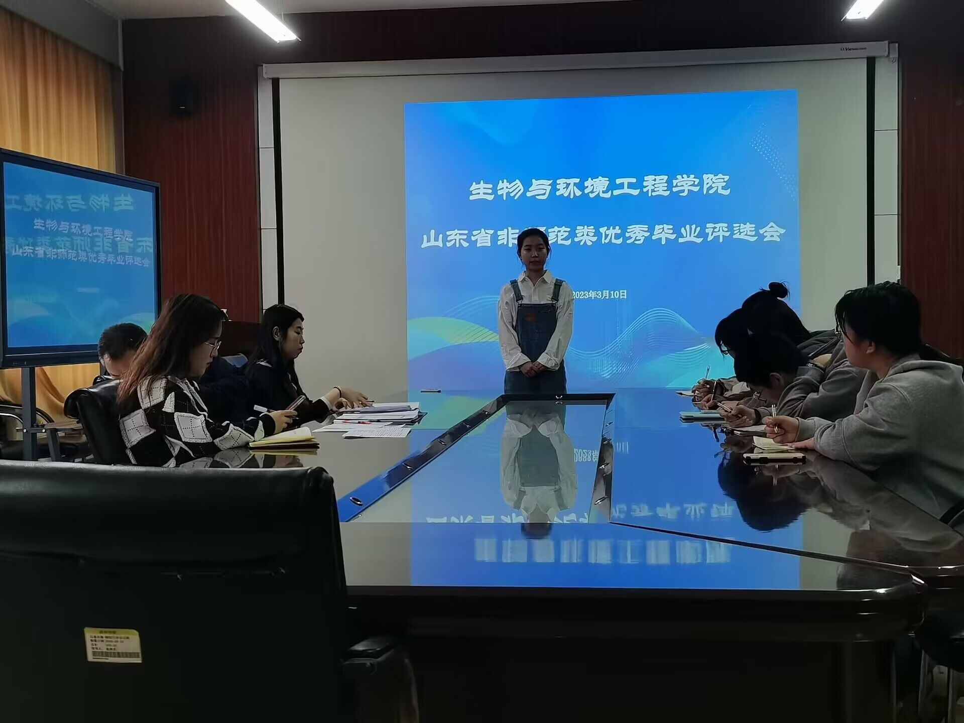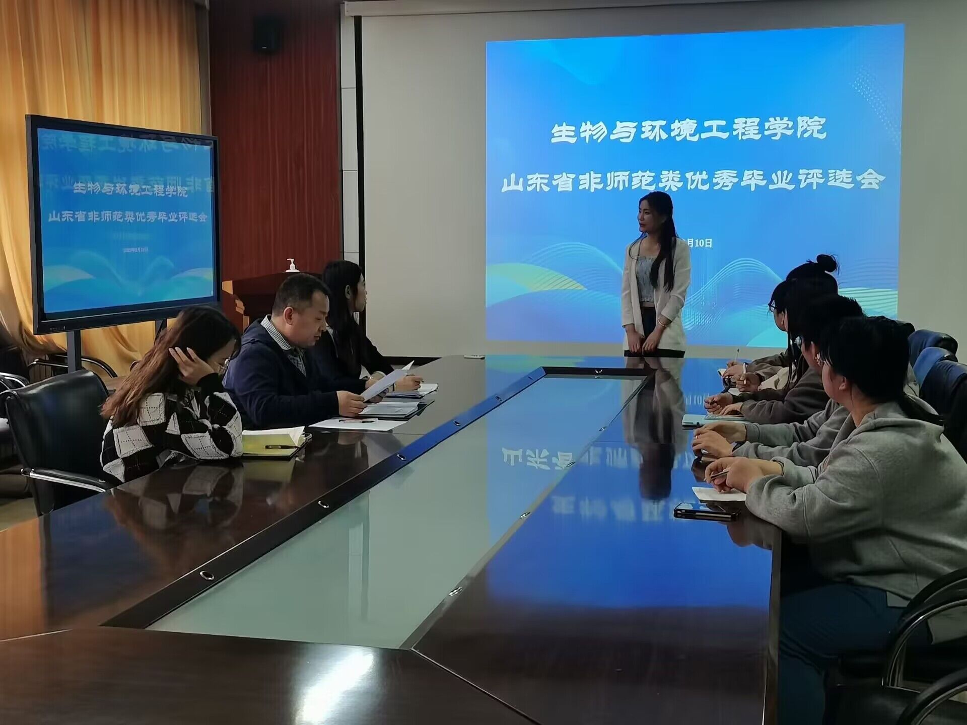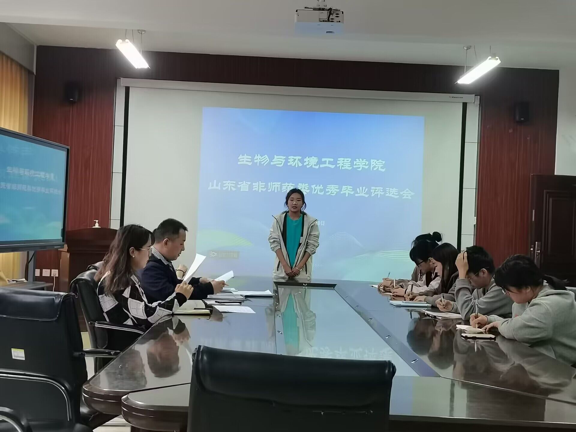 为做好公司2023届省级优秀毕业生推荐评审工作,打造公司与员工互促发展的强劲引擎,永葆滨院与生工自强不息,守正出奇的精神品质,3月10日,生物与环境工程公司于实验中心B7-230教室组织开展山东省优秀毕业生评选会。员工科科长赵望锋,辅导员史戈,周建芳,员工会主席团及自律辅导中心各部门员工代表参与评审,各位符合条件的意向毕业生参与竞选。