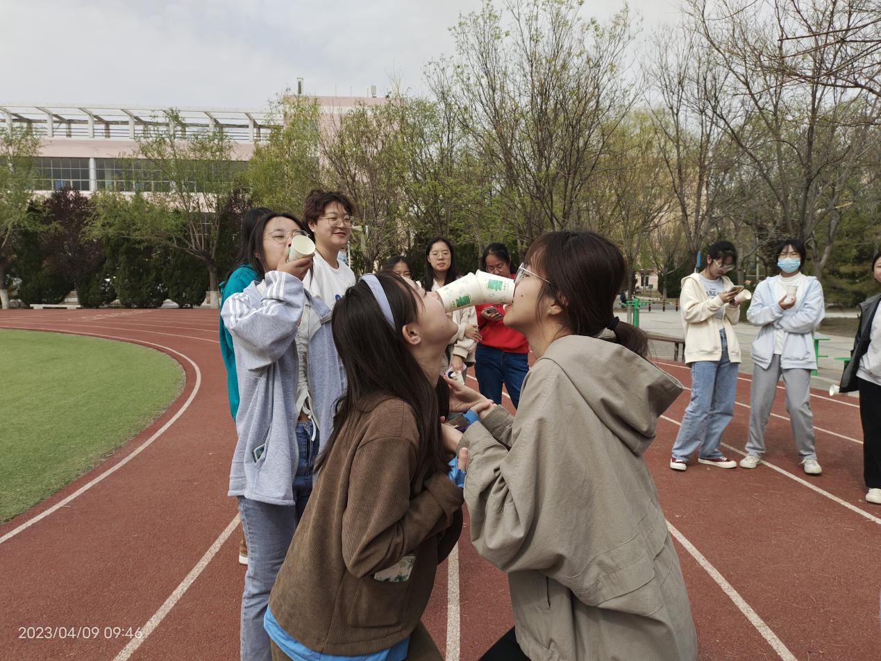 首先,每班派出10名同学参加吹气球游戏。每个人都使出全力力争第一。之后,各班级同学进行自由分组,做好充分准备工作,开始进行接力挑战“我的毽子不落地”游戏。每组同学之间,通过用脚踢毽子以达到毽子传递的目的。游戏同时,由工作人员进行时间记录。用时最快,完成最好的小组取得胜利,各小组名次依次排序。