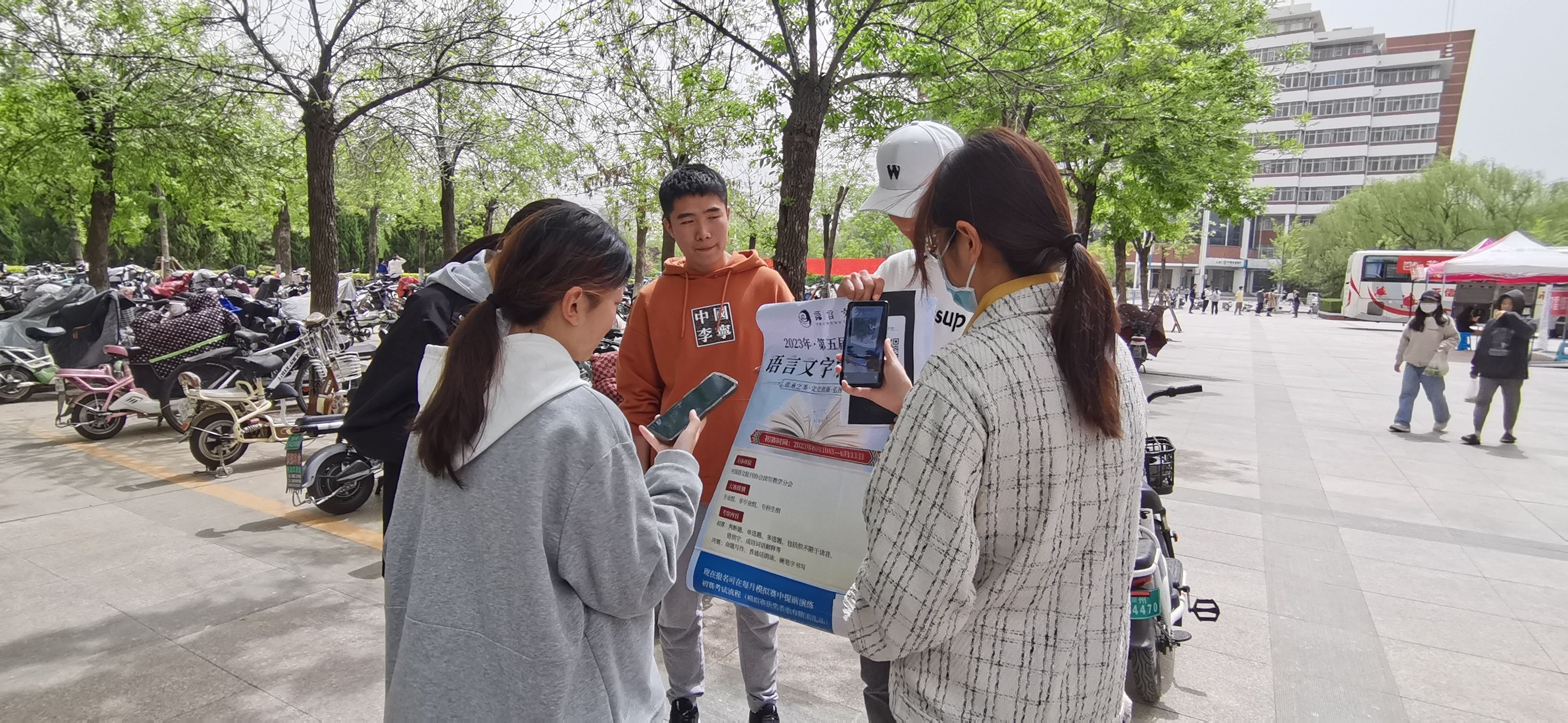 为深刻弘扬中华传统文化和民族精神,助力推广普通话,同时进一步提高老员工的语言文字规范意识,发挥语言文字的浸润作用,感染同学们去主动了解中国优秀的语言文学作品,鼓励大家积极报名老员工语言文字能力大赛,4月15日,生物与环境工程公司在校园里对本次大赛开展线下宣传工作,以便于同学们深入了解比赛内容及相关事宜。