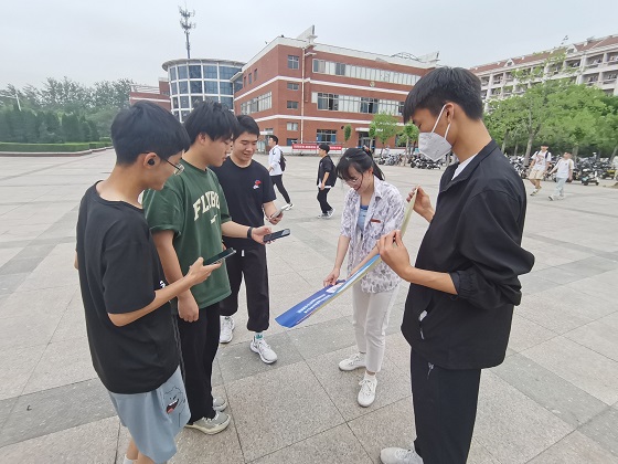 活动开始,部门相关干事进行现场布置,拉横幅,张贴海报。随后,同学们来询问了解有关本次竞赛的参赛条件和相关事宜,相关部门干事对大家的问题进行一一解答,最后,感兴趣的同学们扫描二维码进入qq群,获得题库并进行练习。本次活动圆满完成。