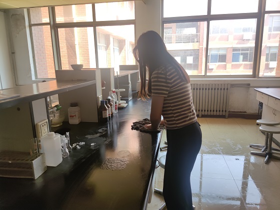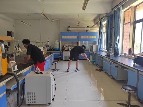 在清洁活动中,大家合理地分配任务,以极大的热情投入到实验室的大清整和安全隐患排查中去。毕业生党员把实验室内的每一处角落、缝隙进行彻底的打扫干净,对各类设备仪器小心翼翼地分类并按照要求清洗干净。
