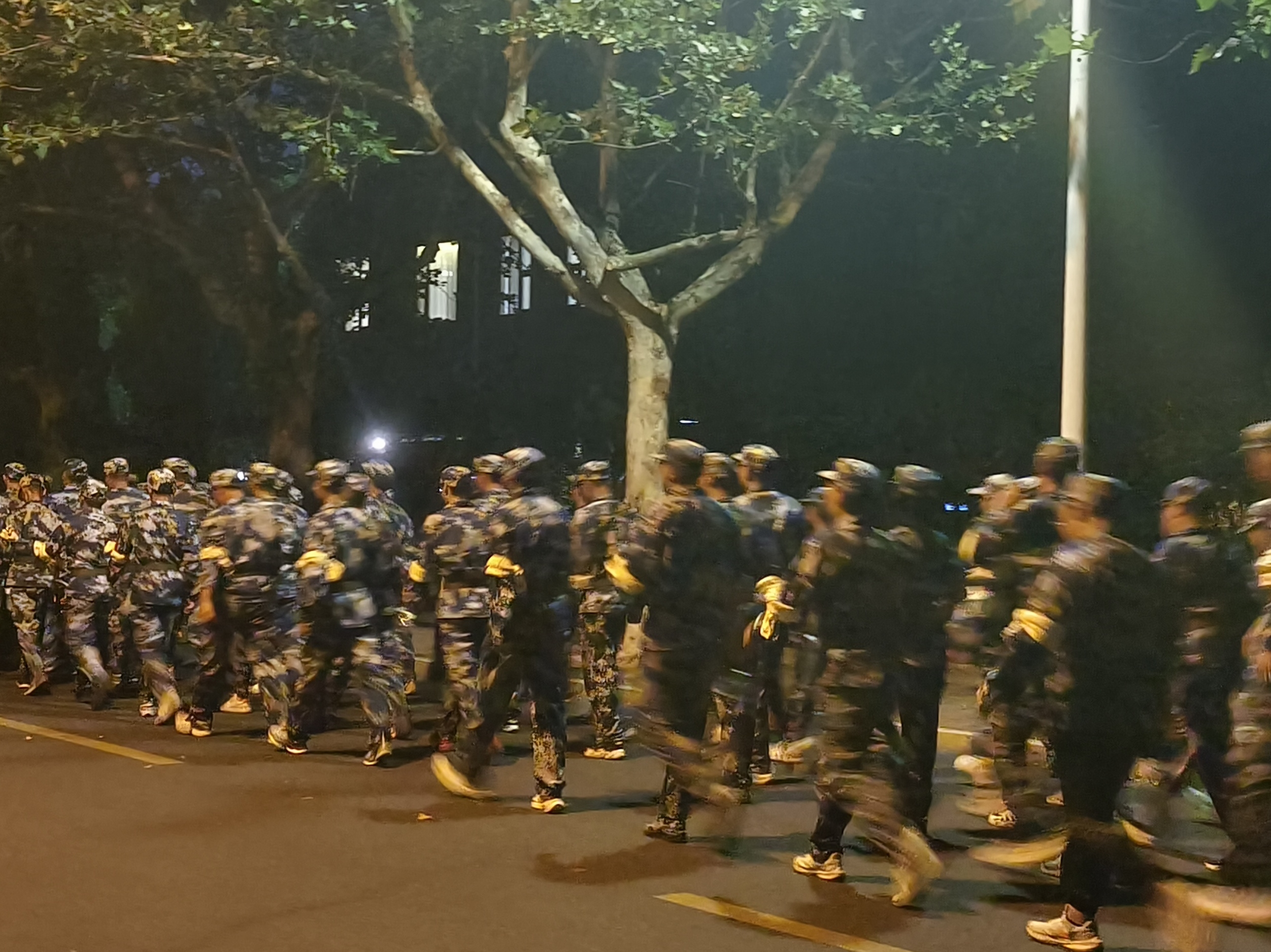 为充分锻炼员工体质,磨炼坚强品格,培养克服种种困难的韧性,9月8日晚,全体2023级军训新生在校园里进行了行军拉连项目,同学们6点50前全部集结到位。校园内绕东西外环路及知行中路按照行军路线图的规定路线,分两个梯队进行拉练,总行程约 10 公里。同学们在教官、辅导员和班主任助理的陪伴和鼓励下,按照规划的路线,不惧黑暗,一个一个脚印,紧跟队伍,铿锵前行。