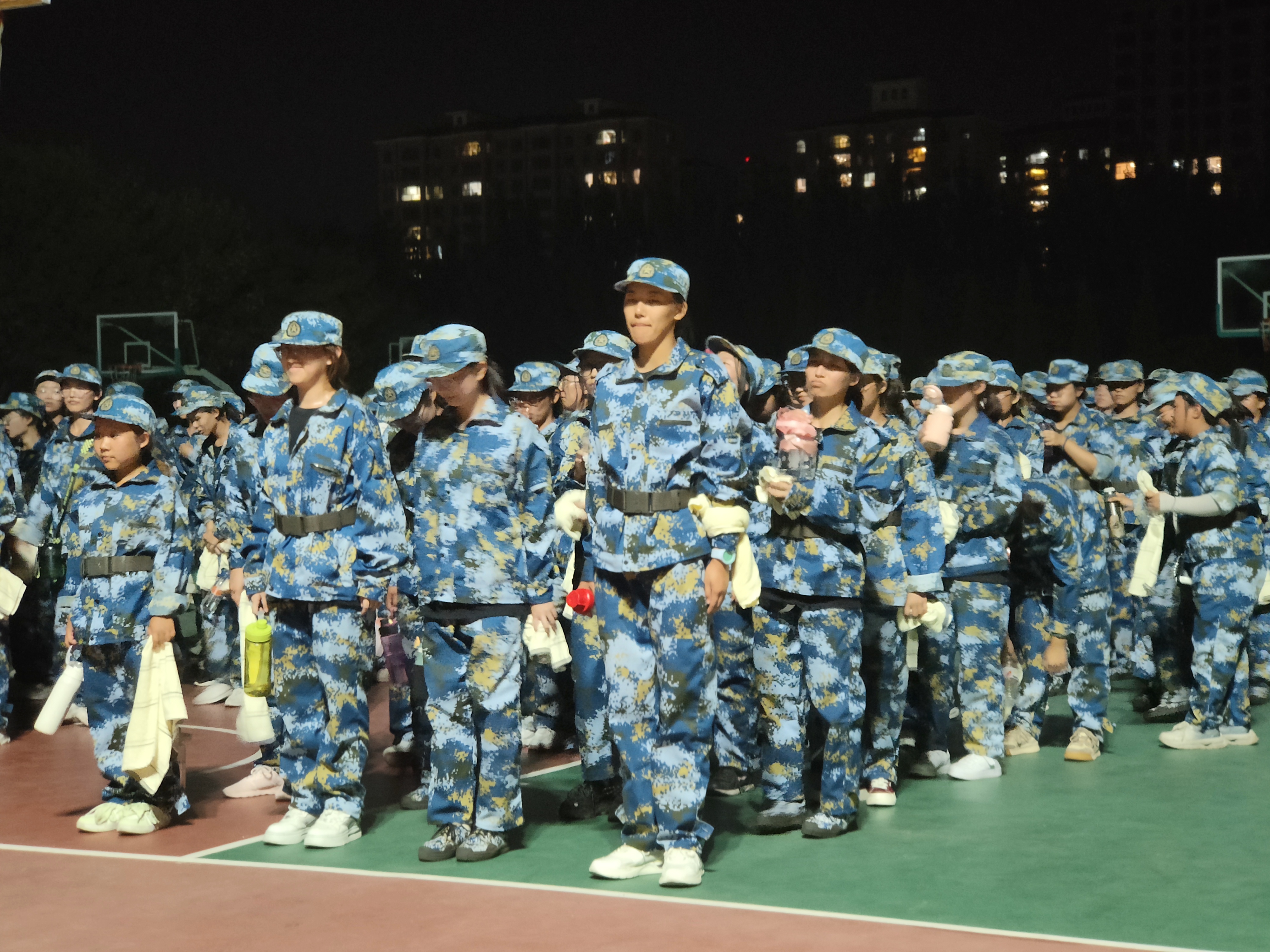行军途中,同学们带着毛巾和水杯,与不平的道路、闷热的天气一同构成了一道独特的“吃苦风景线”。拉练是漫长而辛苦的,但是同学们互帮互助、相互扶持、相互鼓励,期间亦有教官、班主任、班主任助理、辅导员的一路陪伴和志愿者的暖心补给。同学们的感情在黑夜的拉练中不断升温,也就忘了脚下多累,忘了远方多远。漫漫长夜,无人掉队,苦中作乐,奋勇直前!同学们前进途中,也有志愿者为同学们做好后勤保障工作,提供补给物资,帮同学们加油打气。晚上九时许,所有参与拉练的同学完成了行军拉练,坐夜晚的滨院依旧宁静,而车内的同学们已经历了一场精神的洗礼,意志的磨练。