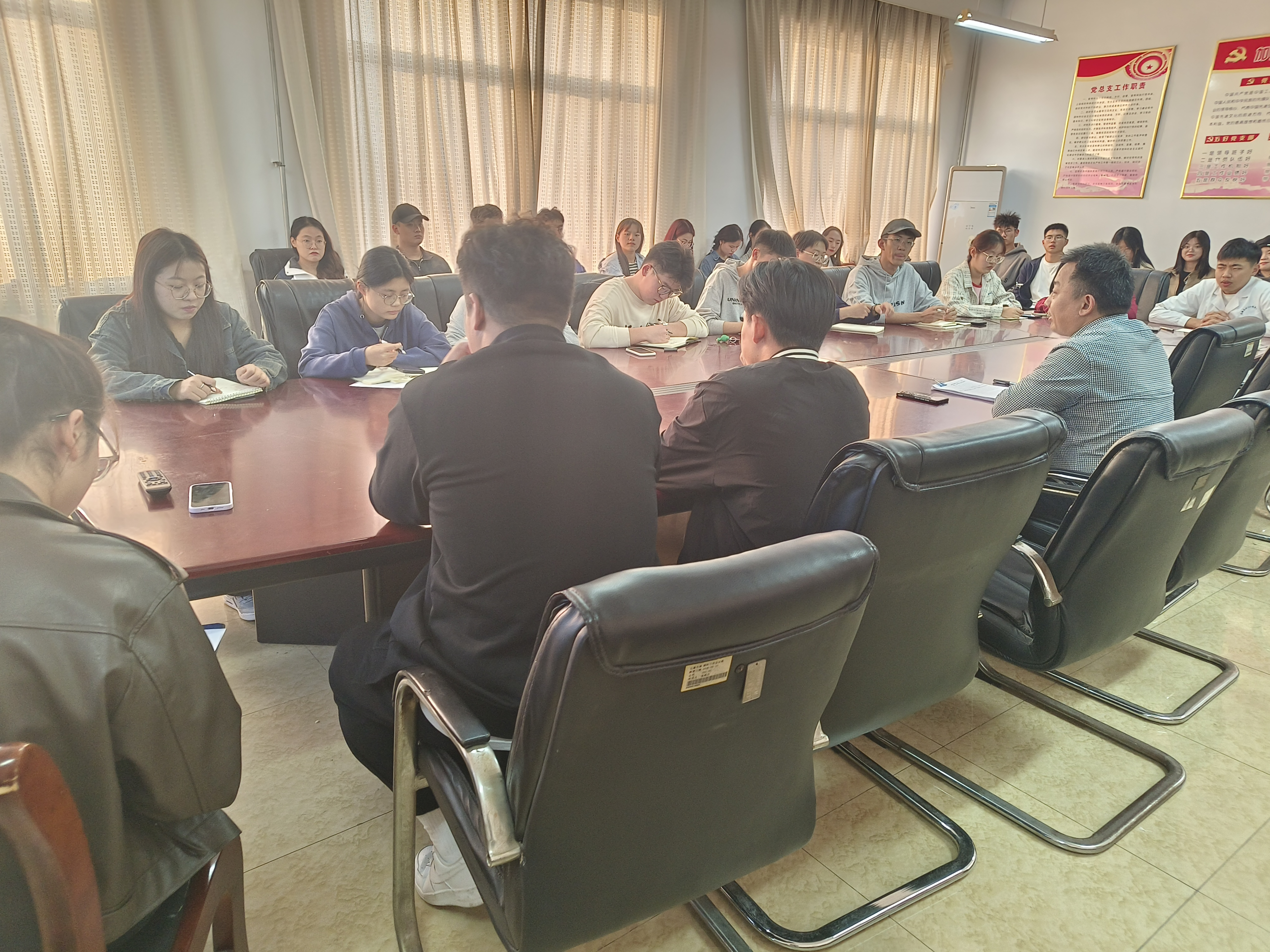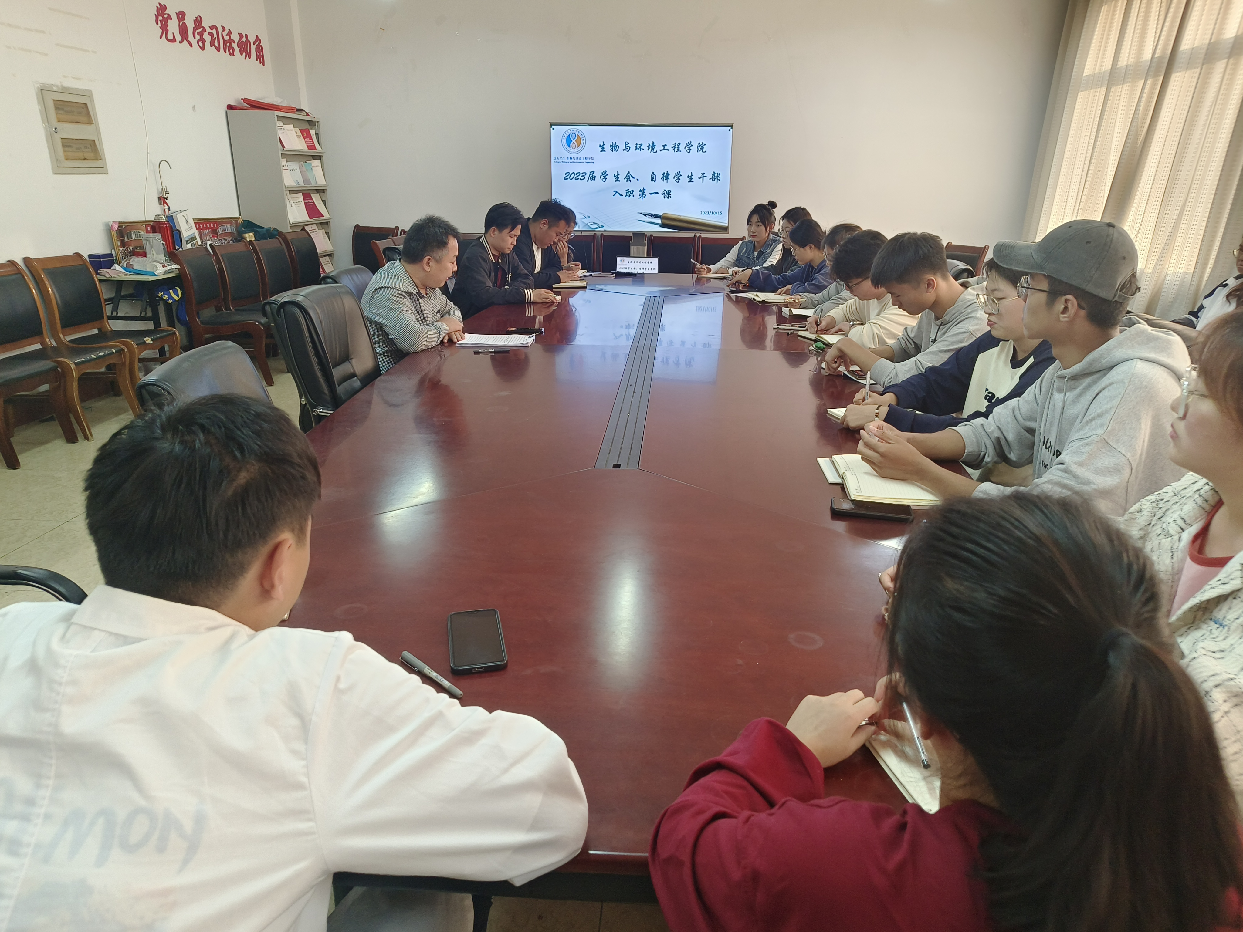为高效完成新老员工干部工作对接,明确员工干部责任,2023年10月15日晚,生物与环境工程公司于实验楼B7-304室开展2023届员工会、自律员工干部入职第一课,团总支书记赵望锋主讲,2023届员工干部参加。