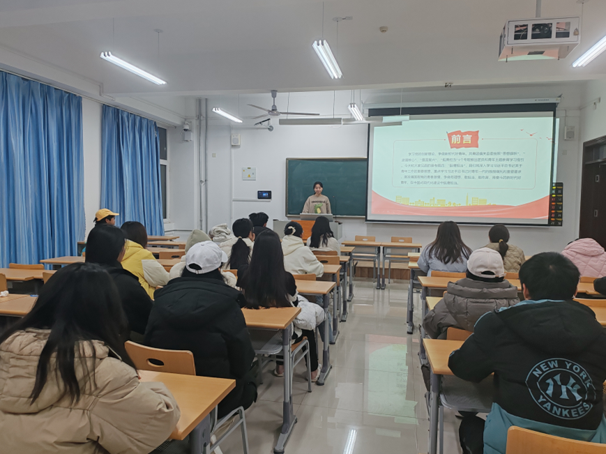 活动开展前,团总支组织召开全体团支书会议,指导各团支部开展学习,深刻理解此次主题团日意义,强调学习重点内容,并对组织形式和效果做了明确要求,对主题团日的组织进行了示范,鼓励各支部采用研讨、交流等方式,丰富主题教育形式,做被广泛接受的主题团日活动。活动伊始,各团支书在团支部内讲解“挺膺担当”专题PPT,讲解习近平总书记关于青年工作的重要思想,习近平总书记对青年一代的殷切希望和重要要求,争做有理想、敢担当、能吃苦、肯奋斗的新时代好青年这三个部分。接着,团支书引导同学们分享学习心得、互解问题困惑,在思辨过程中相互启发、加强理解,更加深刻地认识到党的创新理论的重要性和意义。