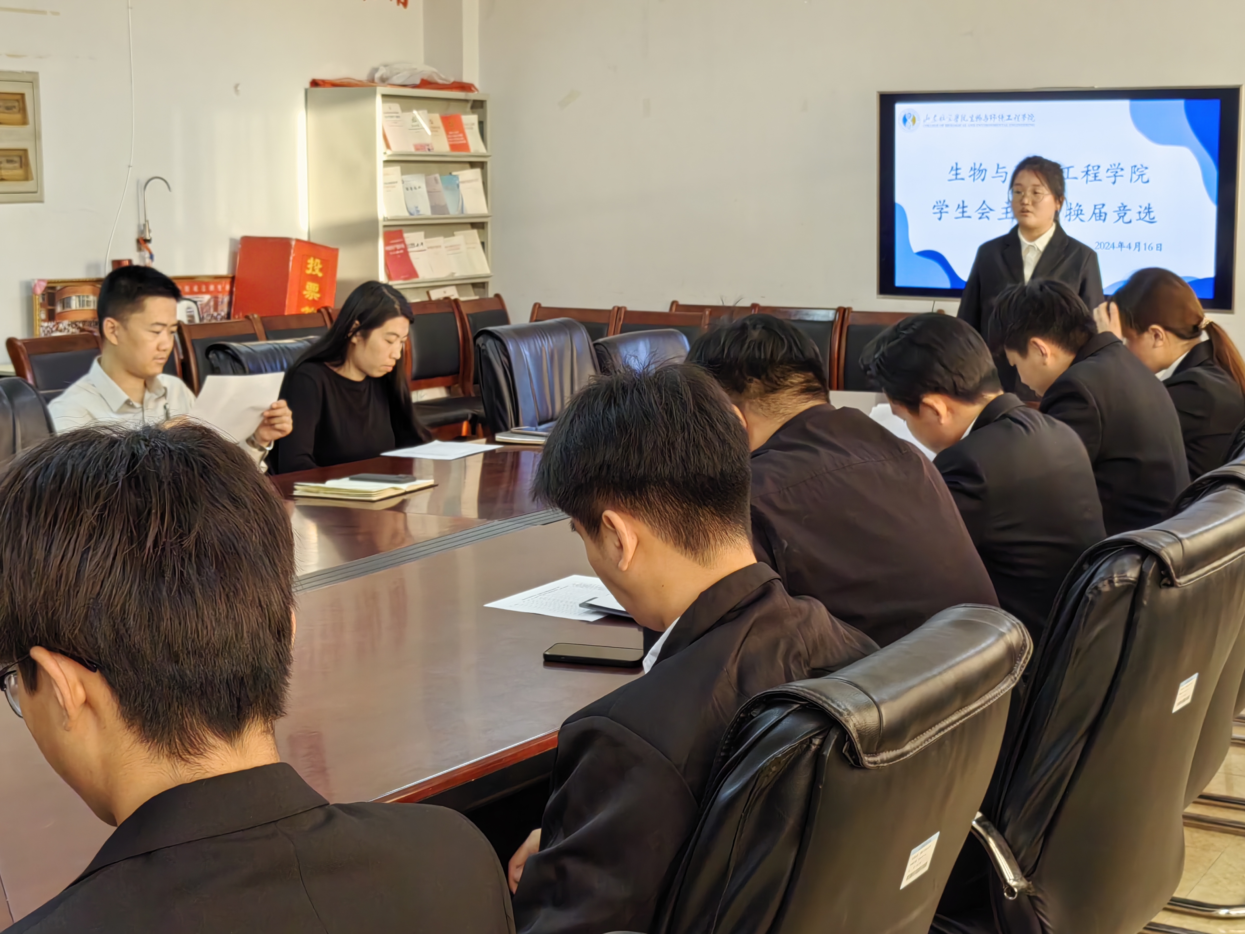为选拔出有能力、有热情、有担当的候选人,为员工会、自律督导中心注入新的活力,推动公司工作的顺利开展。生物与环境工程公司于4月16日在b7-304举行员工会、自律督导中心主席团候选人竞选。本次活动辅导员满强、史戈、周建芳出席,主席团王亚菲主持,主席团全体成员,2022级、2023级部分同学参加。