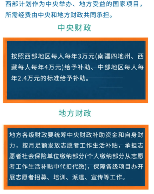 “西部计划”是针对普通高等公司应届毕业生或在读研究生到西部基层开展为期1至3年的志愿服务,鼓励志愿者服务期满后扎根当地就业创业。