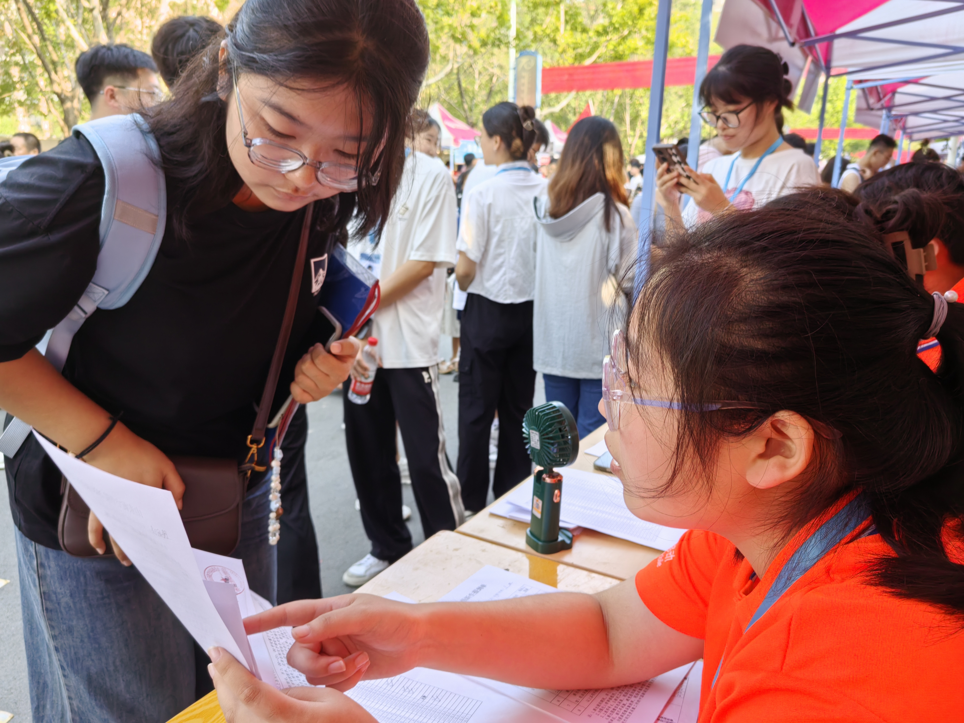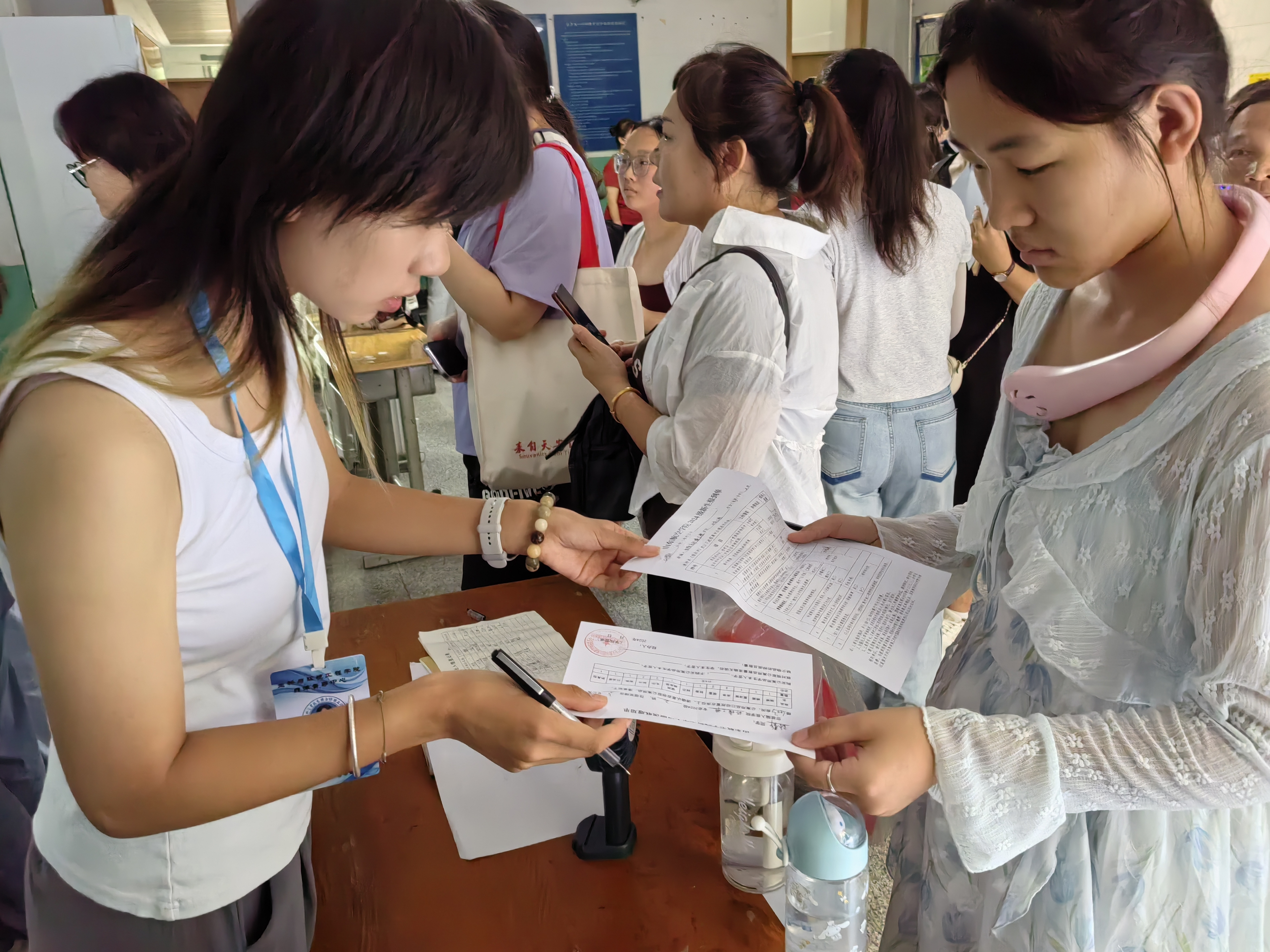 8月31日清晨,迎新工作便紧锣密鼓地展开。在山航院大门处,迎新志愿者们身着统一服装,手持指示牌,热情地引导新生及家长前往报到处。在这里,新生们首先需要进行身份核验与材料审核,组织运营部的干事们仔细核对每一位新生的录取通知书、身份证等必要材料,确保信息准确无误。