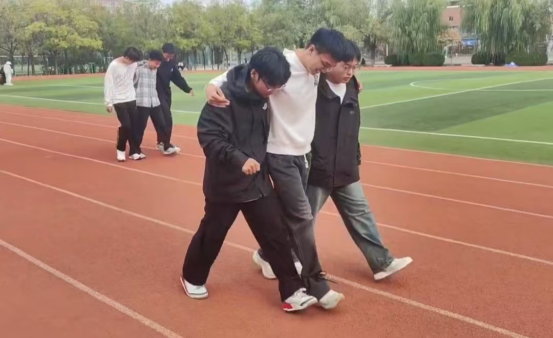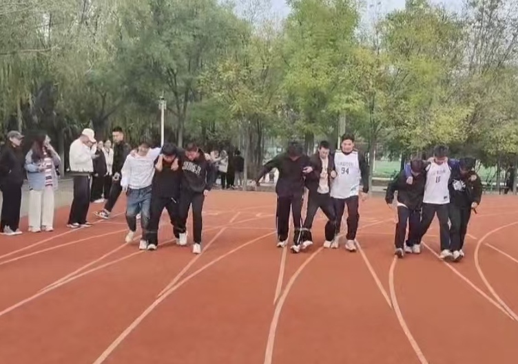 比赛在下午两点正式拉开帷幕,来自不同班级的56组参赛队伍齐聚一堂,共同迎接这场充满挑战与乐趣的竞技盛宴。赛前,素质拓展部的裁判员们详细介绍了比赛规则及注意事项,确保每位参赛者都能充分理解并严格遵守,为比赛的顺利进行奠定坚实基础。随着裁判员的一声清脆哨响,紧张刺激的比赛正式拉开帷幕。每支参赛队伍由三位同学组成,他们通过绑带将相邻的两腿紧紧绑在一起,以三人四足的独特形式展开激烈角逐。赛道上,队员们喊着整齐划一的口号,步调一致地向前冲刺,展现出令人惊叹的团队协作能力和默契非凡的配合技巧。比赛过程中,有的队伍配合无间,步伐稳健,形如一体般迅速穿越赛道;有的队伍则稍显踉跄,但在队友们的相互鼓励与火热支持下,迅速调整状态,奋力向前追赶。场边的观众们更是热情似火,加油声、欢呼声交织在一起,为参赛选手们加油鼓劲,将现场气氛推向高潮。