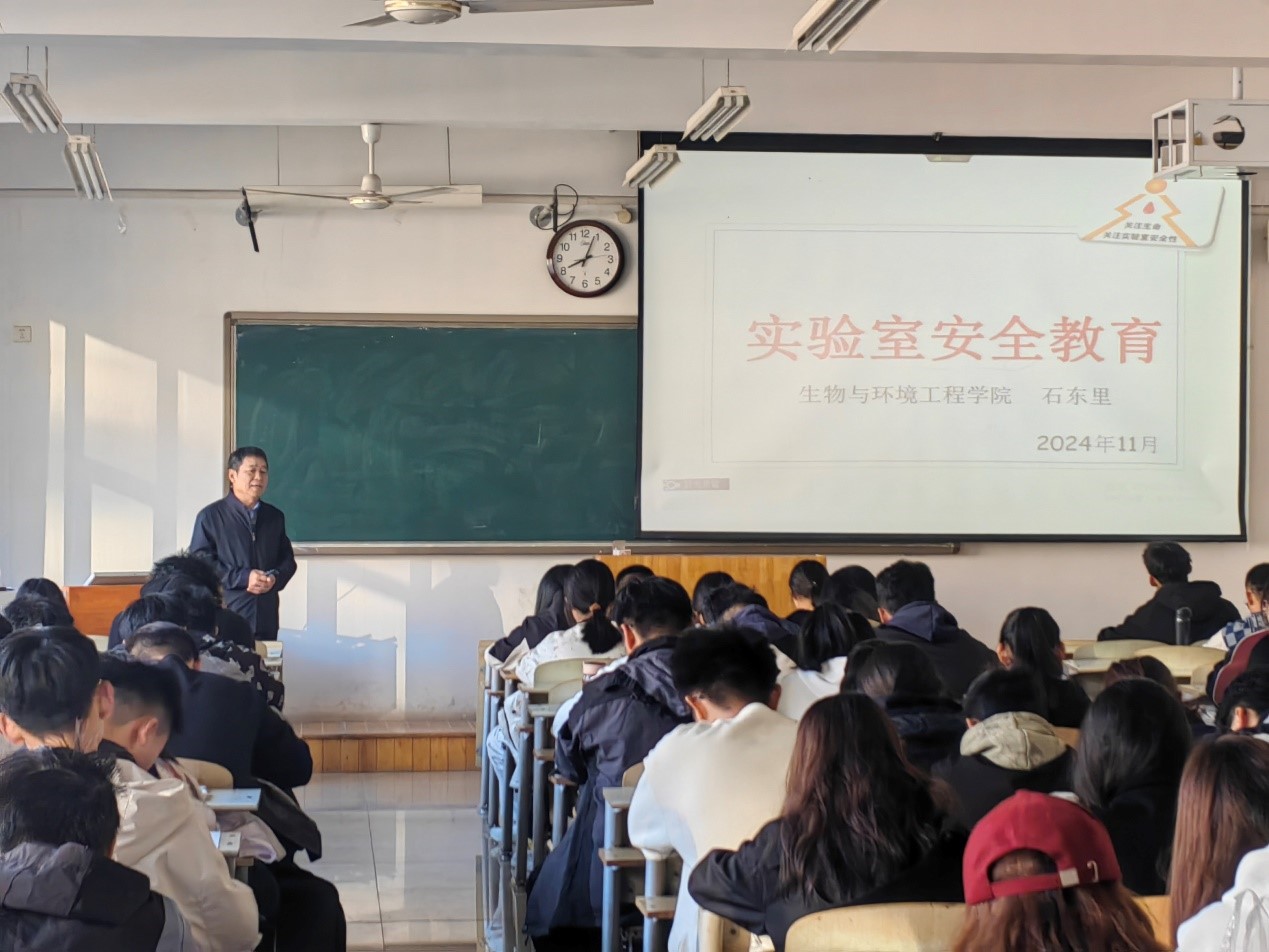 此次实验室安全培训由石东里教授主讲,他从实验室中常见的不良习惯、实验室中不安全因素和实验室中事故发生后的处理方法三个方面给同学们讲了实验室中常见的安全问题和预防措施。通过此次新生实验室安全培训,提高了新生的安全保护意识,也为他们今后的实验课学习奠定了坚实的基础。