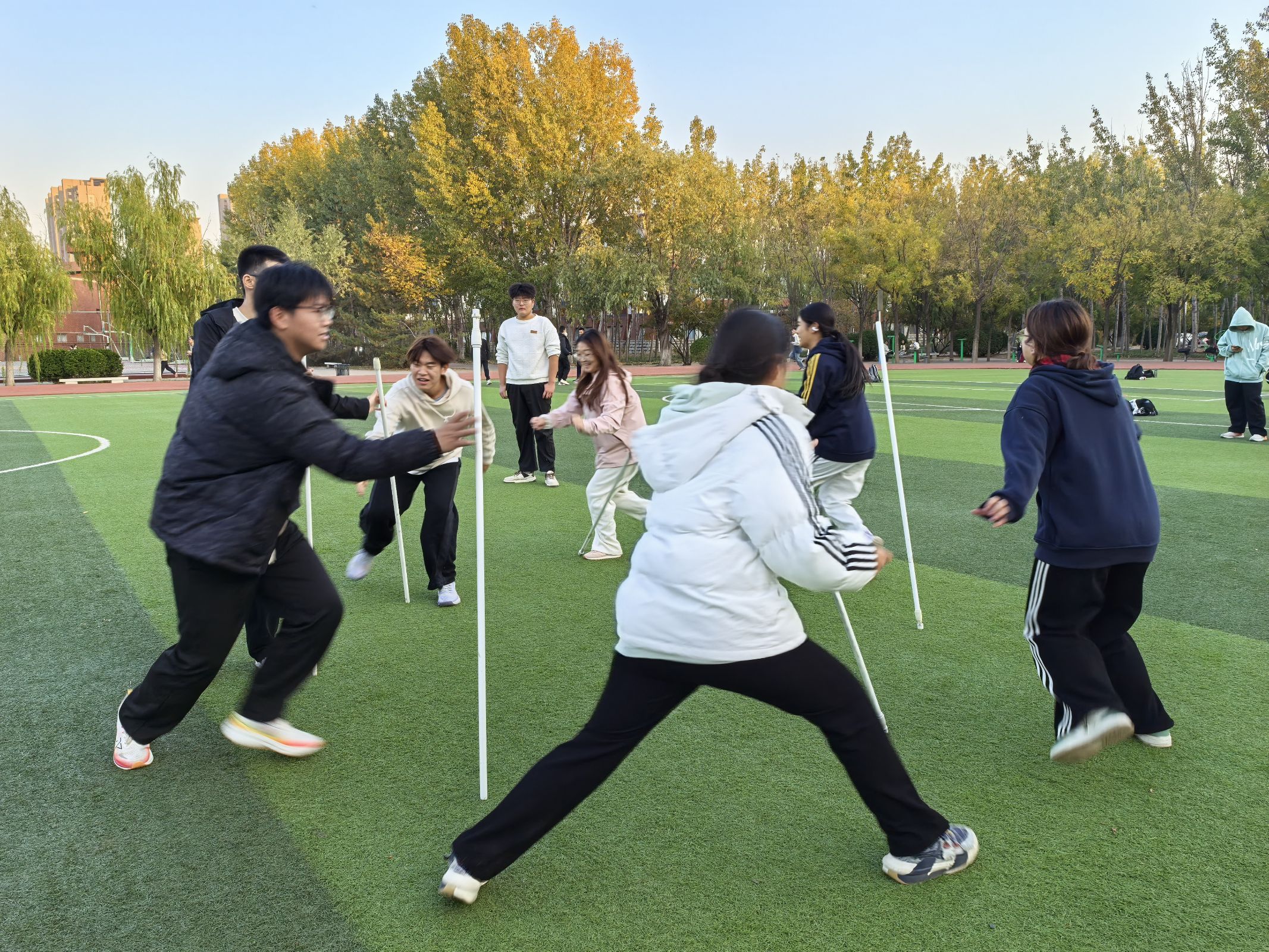 活动在校园的一片开阔草地上展开,同学们怀着期待和兴奋的心情参与其中,本次活动精心设置了多项趣味游戏,旨在让同学们放松心情,调节压力。在珠行万里环节中,同学们彼此配合,小球在短筒中被同学们稳稳接住,这不仅考验了个人的积极性,更增进了彼此之间的信任和默契。坐地起身游戏则让大家深刻体会到了团队沟通与协作的力量,在个人难以起立的情况下,同学们通过交流共同完成了团队任务。此外,还有不倒森林,摸石过河,一块五毛等妙趣横生的活动,让欢声笑语充满了整个场地。这些简单的趣味性游戏不仅让同学们在紧张的学习之余舒展身心,缓解心理方面的压力,更使成员们在合作中对信任,协作,沟通和情感表达等方面有更深的理解和感悟。同时可以营造班级团结和谐的氛围,在同学间提供情绪价值,减轻个人心理负担。