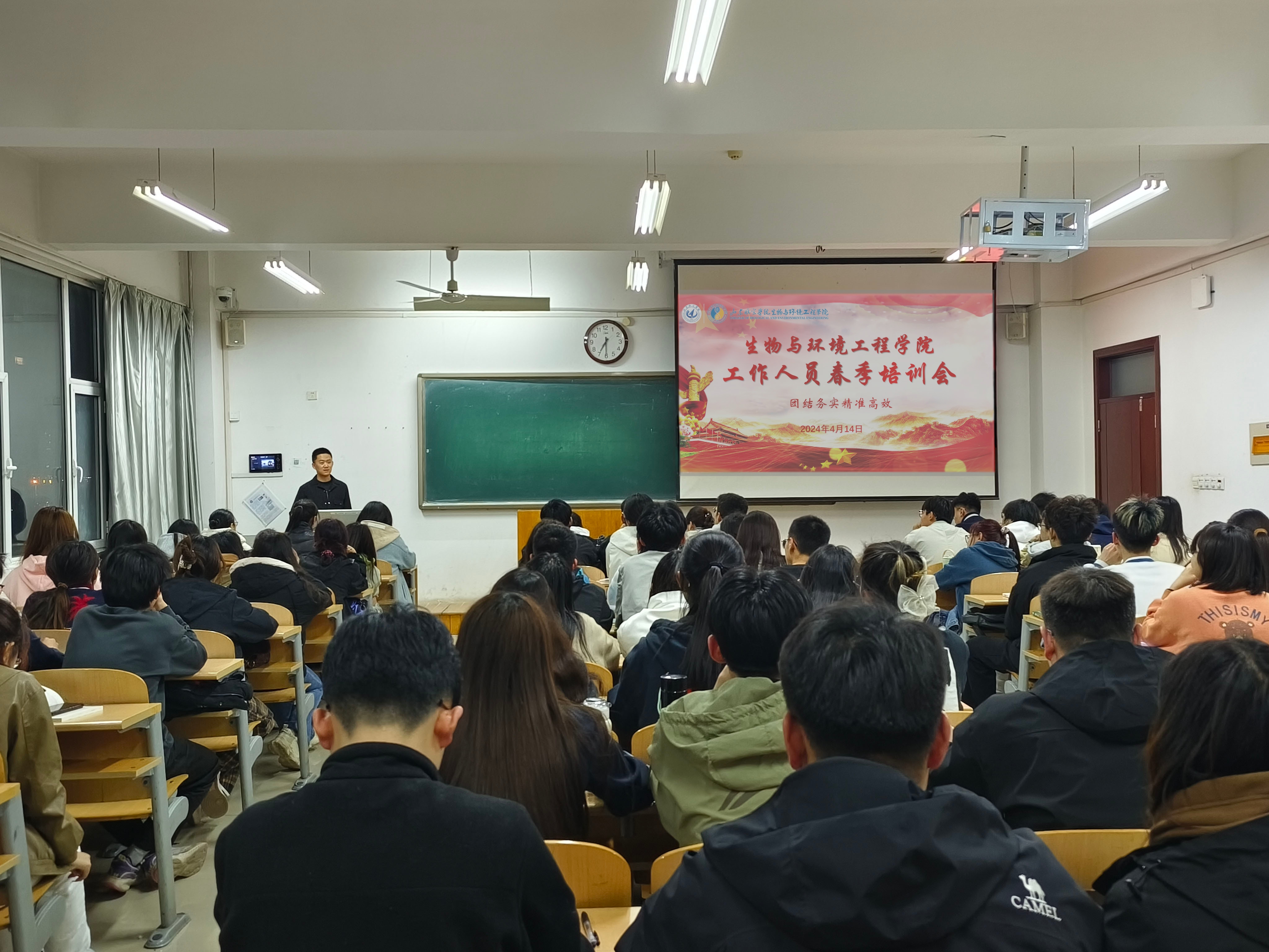 为了调动员工干部工作积极性,提高工作的规范性,更好的服务同学,为公司作贡献。4月14日生物与环境工程公司在8号教学楼401教室召开员工会工作人员春季培训会。此次大会由员工科长满强主持,员工会全体工作成员参加。