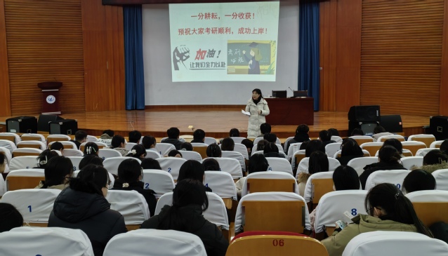 她从同学们即将参加的研究生入学考试谈起,希望同学们保持坚定的信心,坚持不懈,并祝愿考研学子能够通过考试,成功进入新的学习阶段。她谈到,2021年9月在给同学们上的开学第一课中,曾给同学们介绍了公司的发展历程、团队建设和研究生教育等方面的情况,并帮助同学们规划了在校期间的学习发展方向。三年多的时间,全体同学脚踏实地、刻苦学习,在生物与环境工程公司优良学风的滋养下,扩宽了视野,锤炼了学术研究与创新能力,为未来发展打下了坚实的基础。在研究生考试来临之际,王君给同学们提了三点建议。一是不忘初心,勇担使命,把个人理想融入强国征程,培养家国情怀。二是坚持学习,诚信应试,认真对待人生每一场考试。三是躬身笃行,知行合一,争做生态文明建设的践行者和保护者。