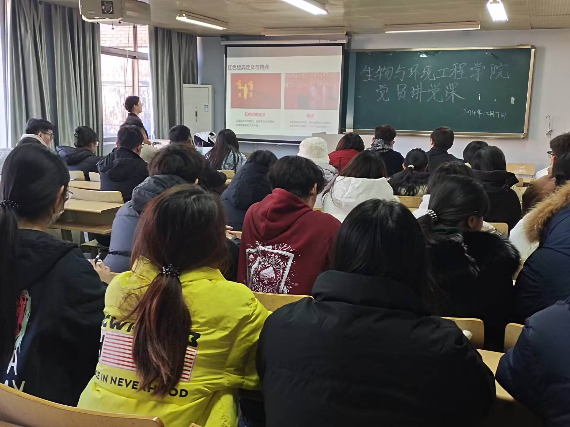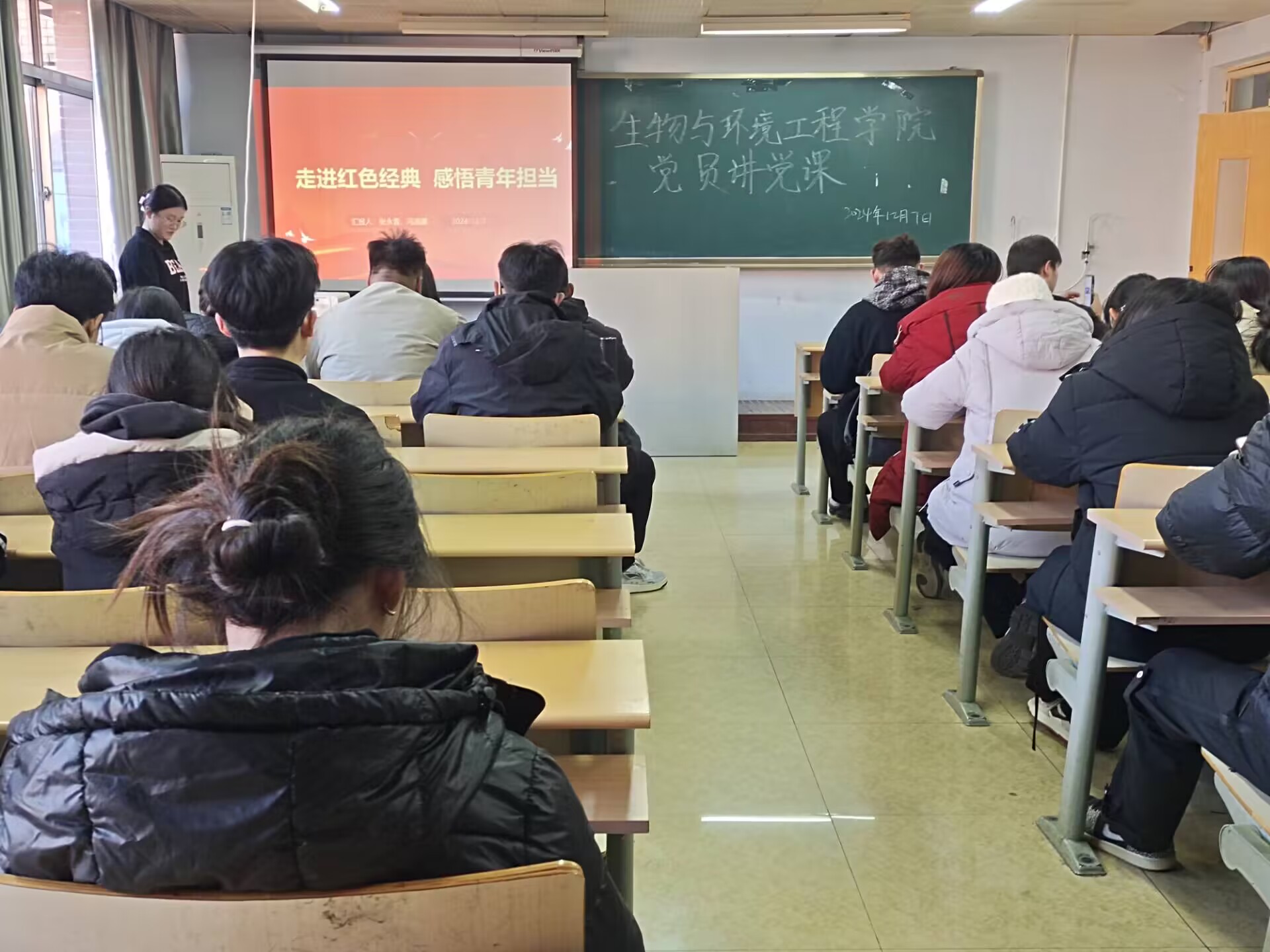 在深入学习贯彻习近平新时代中国特色社会主义思想与党的二十大精神的浪潮中,为切实提升党员思想政治素养,强化党员教育管理工作,生物与环境工程公司于12月7日在实验中心B7-311成功举办了党员讲党课活动。此次活动以“走进红色经典,感悟青年担当”为主题,由公司预备党员张永雪、冯淑英负责主持汇报,吸引了60余名班干踊跃参与。