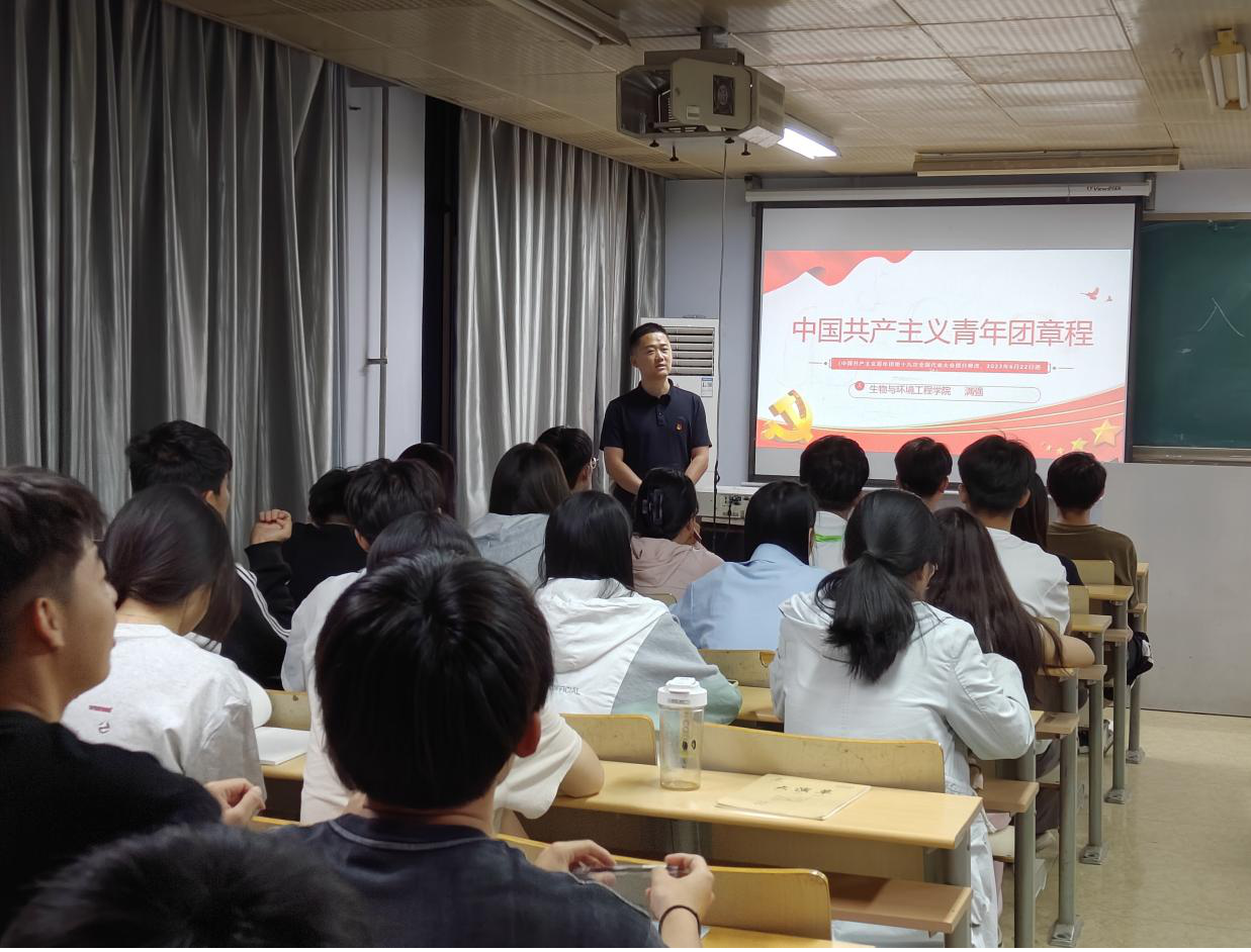 为加强团员队伍的思想建设,增强团员对中国共产主义青年团的了解,生物与环境工程公司于2024年6月21日在实验中心b7-311围绕中国共产主义青年团章程召开主题宣讲,此次宣讲由辅导员满强老师主持,22级和23级团员参加。