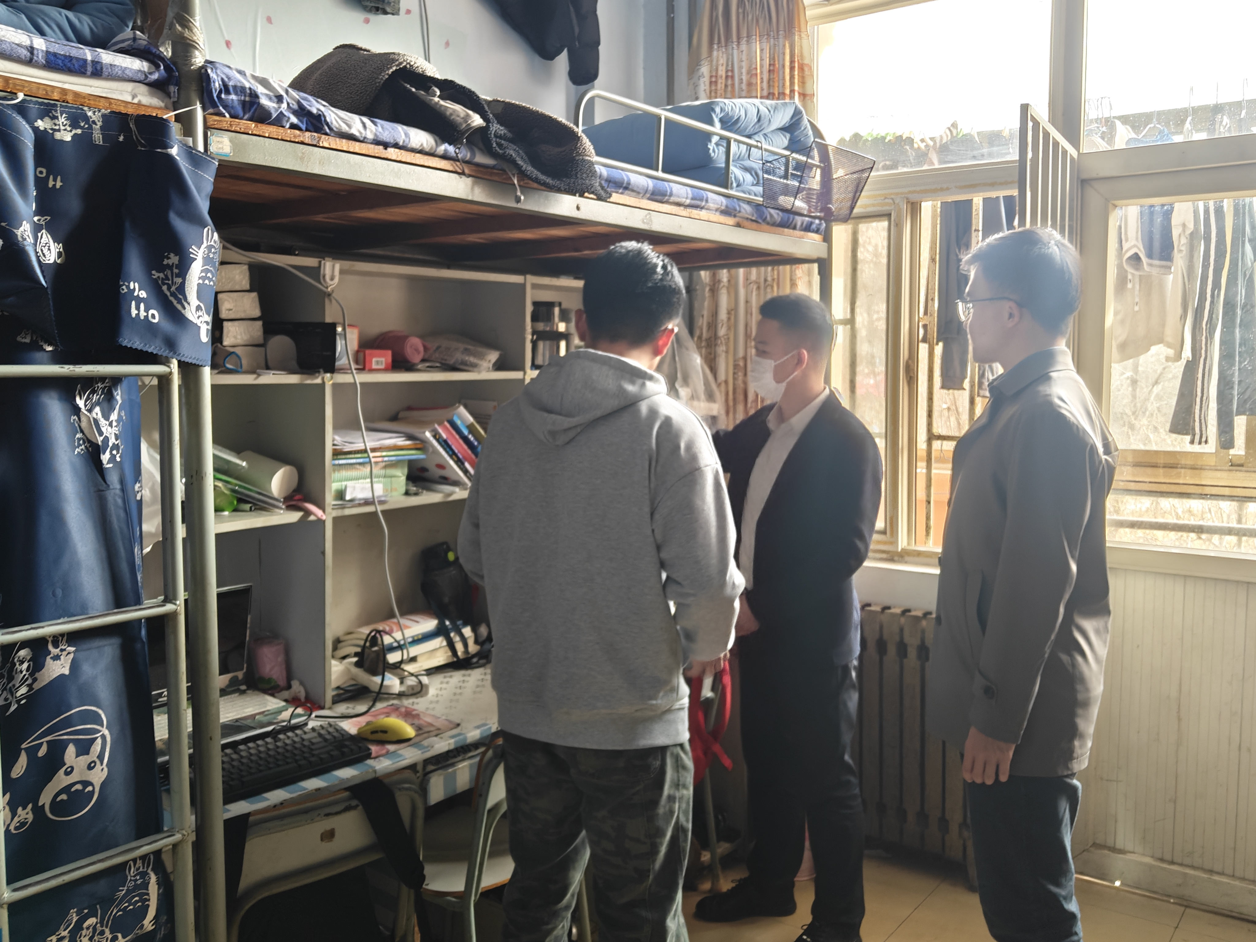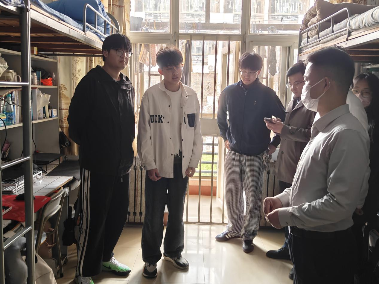 在检查过程中,满强和陈新宇老师还与同学们亲切交流,深入了解大家在宿舍生活中的实际需求与遇到的问题,提醒同学们时刻增强安全意识,养成良好生活习惯,共同守护宿舍安全。