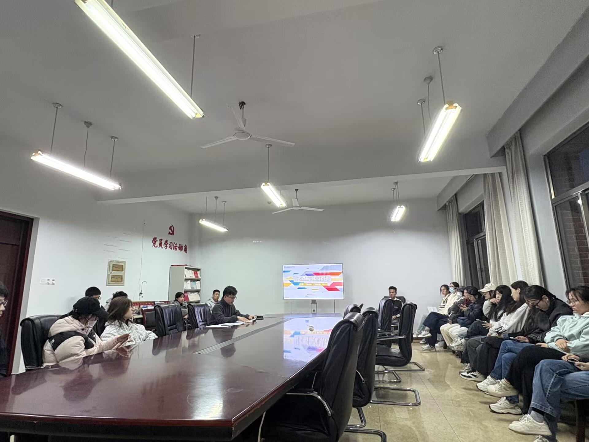 为深入贯彻落实我校关于做好高校毕业生就业工作的规划部署,保障公司毕业生高水平、高质量“双高”就业,对毕业生职业规划实现“一对一”精准画像,3月27日晚,太阳成集团tyc234cc在B7-304召开毕业生就业指导大会,本次大会由就业指导科科长满强、辅导员陈新宇参加,21级部分毕业生参会。