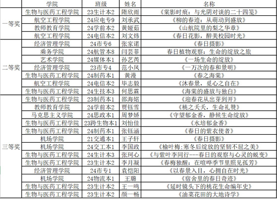 此次大赛中,同学们纷纷化身自然的记录者,凭借手中的镜头与灵动的文字,精心描绘植物生长的奇妙旅程。隋欣雨同学的一等奖作品《棠影时痕:与光阴对谈的二十四笺》,以细腻笔触勾勒海棠盛放的诗意;黄漫同学的《春之海棠》荣获二等奖,将春日生机凝于方寸之间;更有刘怡佳、张钰涵、张珂心、李月凝、王一鸣、颜一畅等多位同学的作品,从不同角度展现了生物与医药工程公司学子对自然的敏锐洞察和独特审美,喜获三等奖。