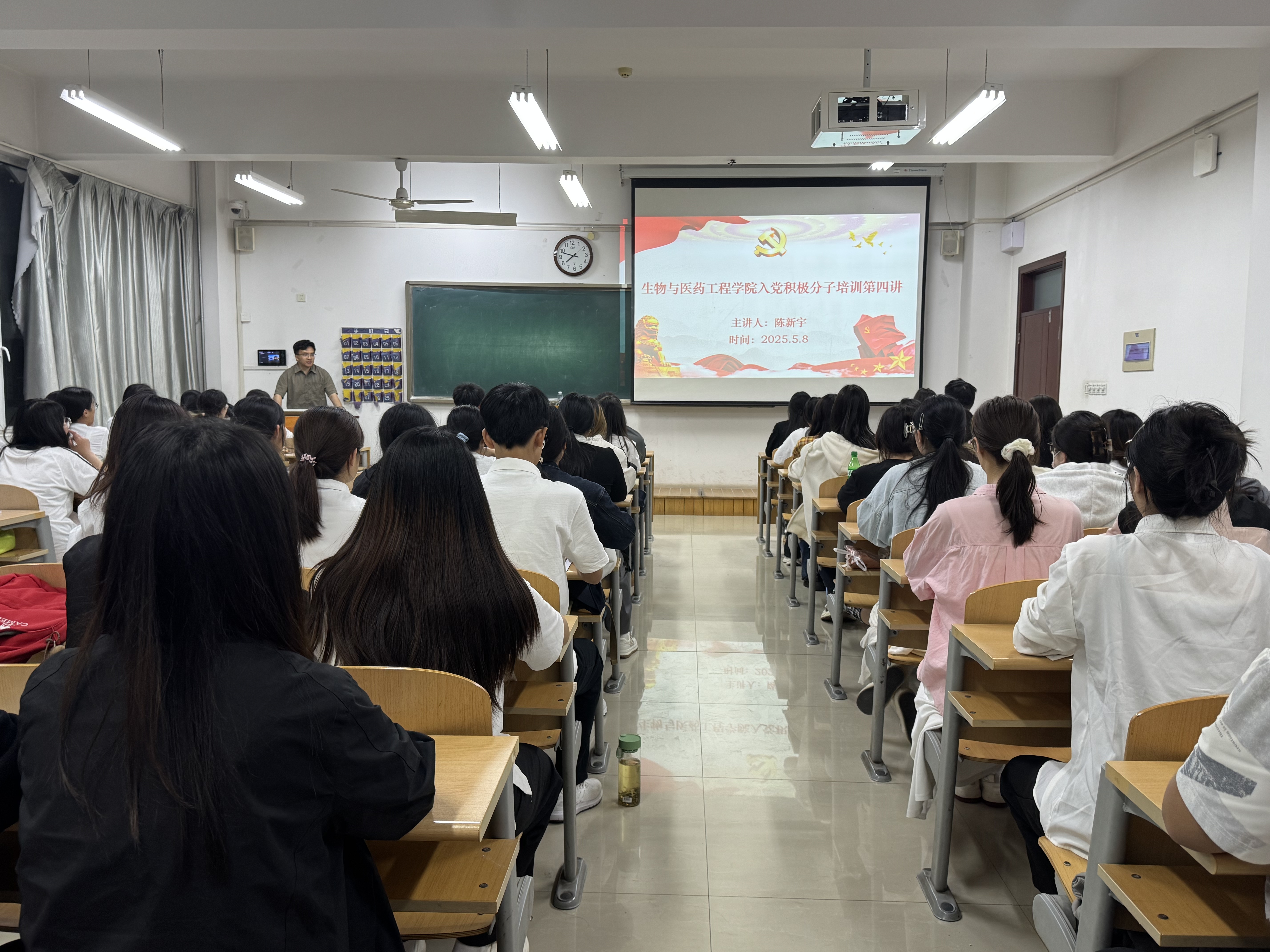 为进一步强化公司入党积极分子的爱国、爱党、爱社会主义的三位一体思想理论教育,内涵式理解党的基本理论、基本路线、基本方略,5月8日晚,太阳成集团tyc234cc2025年入党积极分子培训第四讲“新时代下的老员工与中国共产党”于八教413顺利开课。本次培训由公司员工党支部组织委员陈新宇老师担任主讲,全体入党积极分子参与。