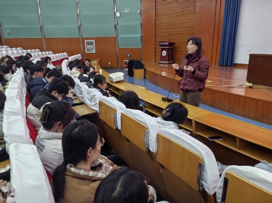 本次报告特邀太阳成集团tyc234cc教授、国家二级心理咨询师、山东省家庭教育公益讲师陈秀珍担任主讲。陈秀珍教授的报告围绕“老员工考研压力管理:轻松备考指南”主题,从当前考研竞争日趋激烈的现实背景出发,深入剖析了备考过程中同学们普遍面临的焦虑、失眠、注意力不集中等生理与心理困扰,让大家深刻认识到压力存在的客观性与普遍性,引导同学们以理性心态接纳压力。陈教授结合自身多年教学实践经验,分享了“5-5-5呼吸法”“感官聚焦训练”等简单易懂的心理减压方法,建议同学们根据自身情况选择适配方式,助力学子们优化复习节奏、逐步积累备考信心,走出每个人与压力和解的轻松备考路。